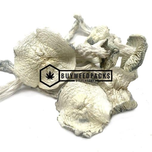 These mushrooms feature thick, ivory stems and milky-white caps with a shimmering bluish hue. Potency is very high, with effects that are both powerfully visual and deeply introspective, making them best suited for experienced explorers.