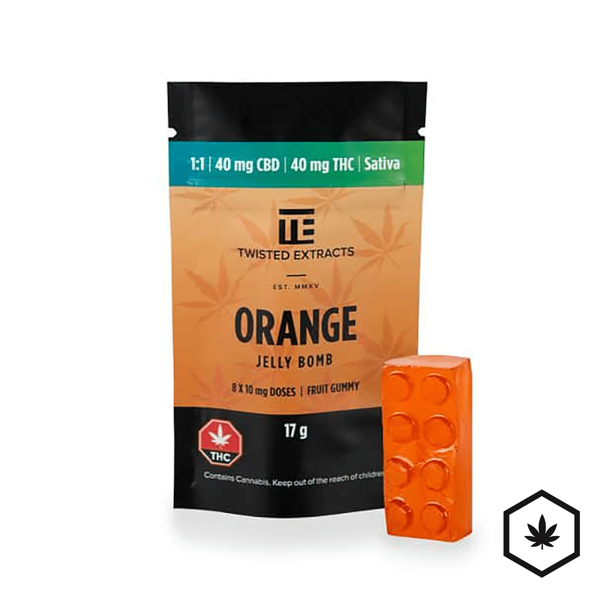 Dose: 8 x (5 mg THC + 5 mg CBD) per Jelly Bomb – 40 mg THC + 40 mg CBD per package