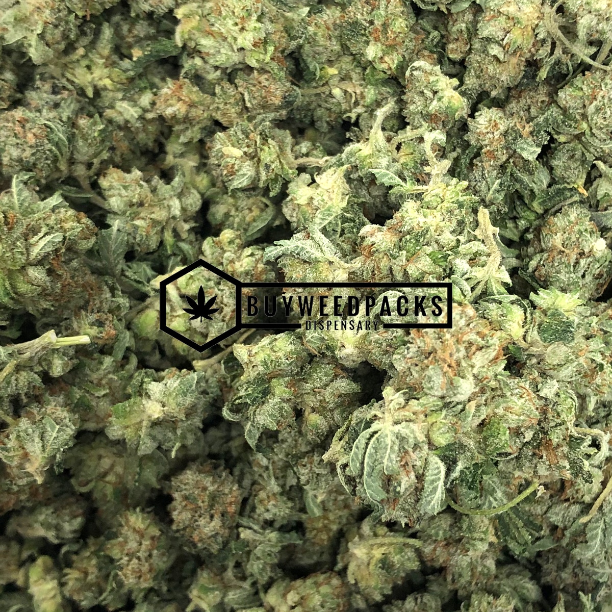 • Frosty popcorn buds coated in white trichomes, delivering both visual appeal and potency.